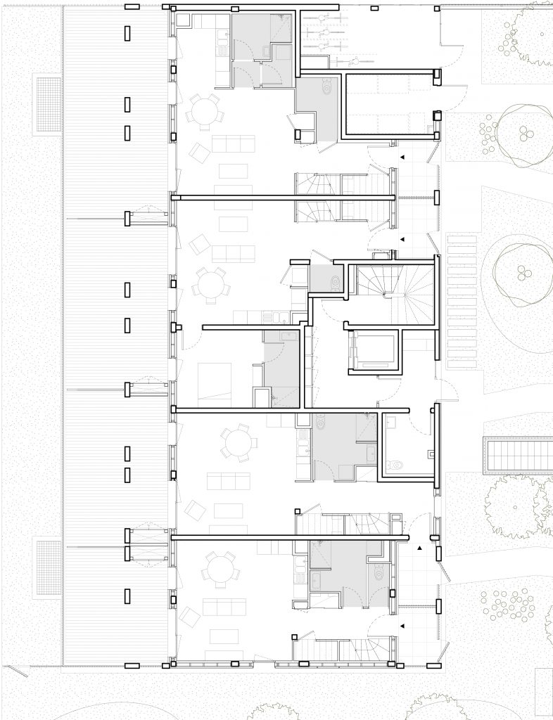 Ce projet épouse le schéma urbain et environnemental de la ZAC Terraillon à Bron. Divisé en 4 plots de logements organisés sur le principe de l’îlot ouvert, le projet s’inscrit dans une logique de transition douce visant à intégrer de manière apaisée les exigences du développement durable.